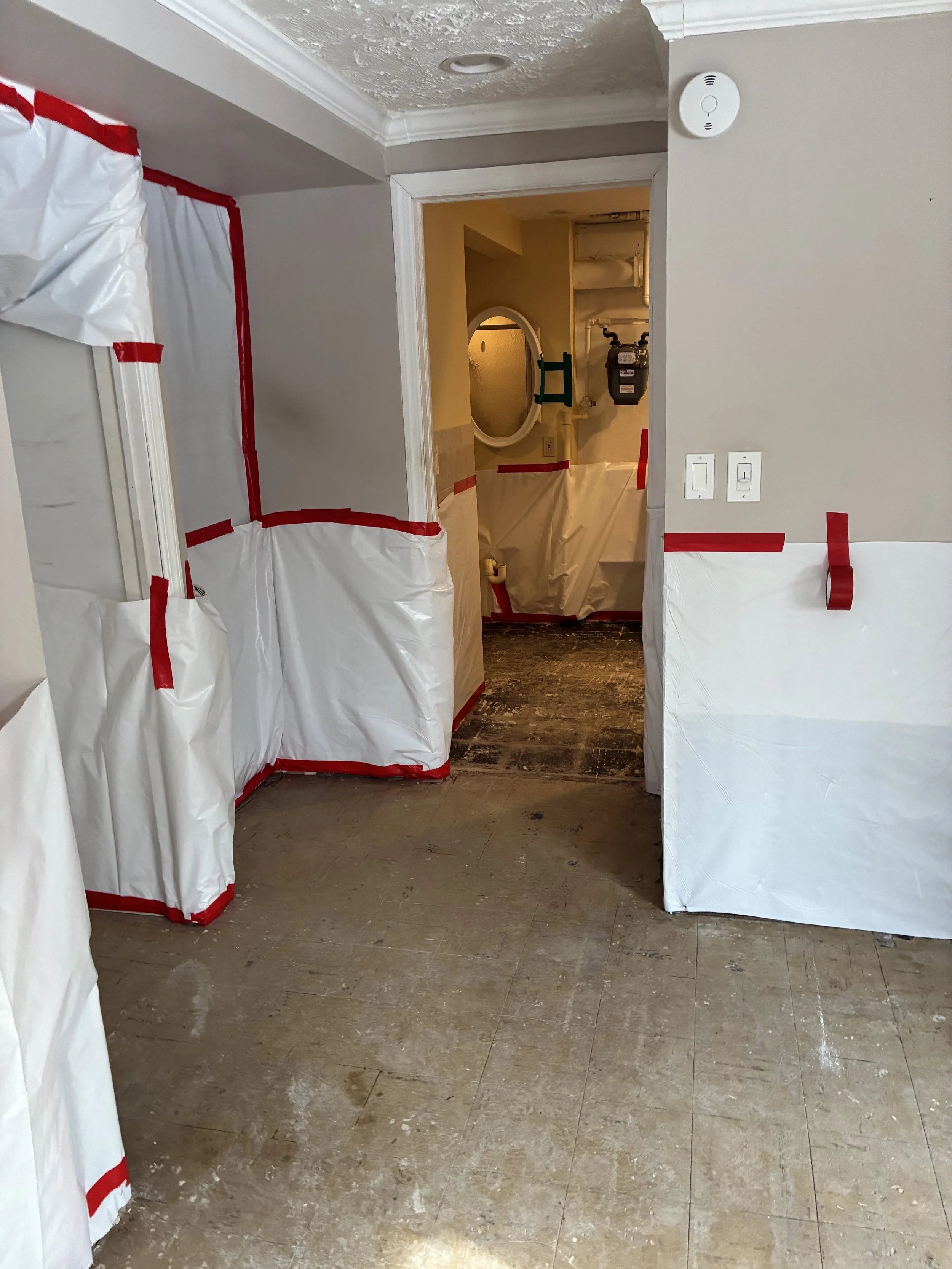 Removal & Disposal Mold Contaminated and Water Damaged sheetrock and vinyl flooring- Little Falls, NJ